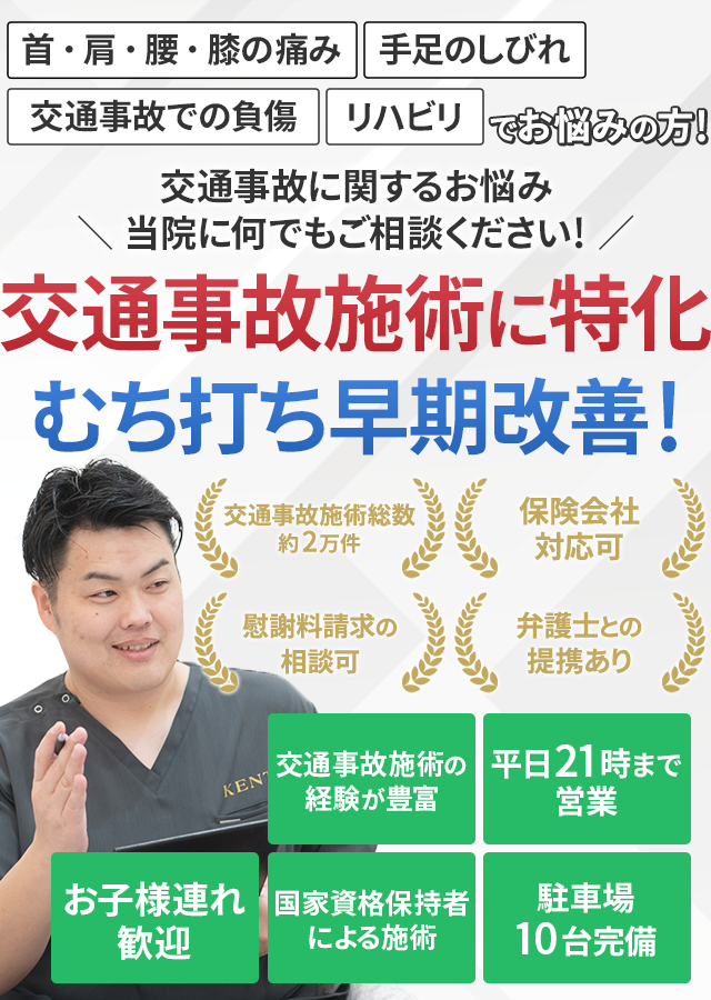 当院では、患者様の早期回復を最優先としながら、保険会社様との信頼関係構築も大切にしております。不明瞭な請求や過剰な施術を避け、透明性のある対応を心がけることで、三者すべてにとって納得できる関係づくりを目指しています。